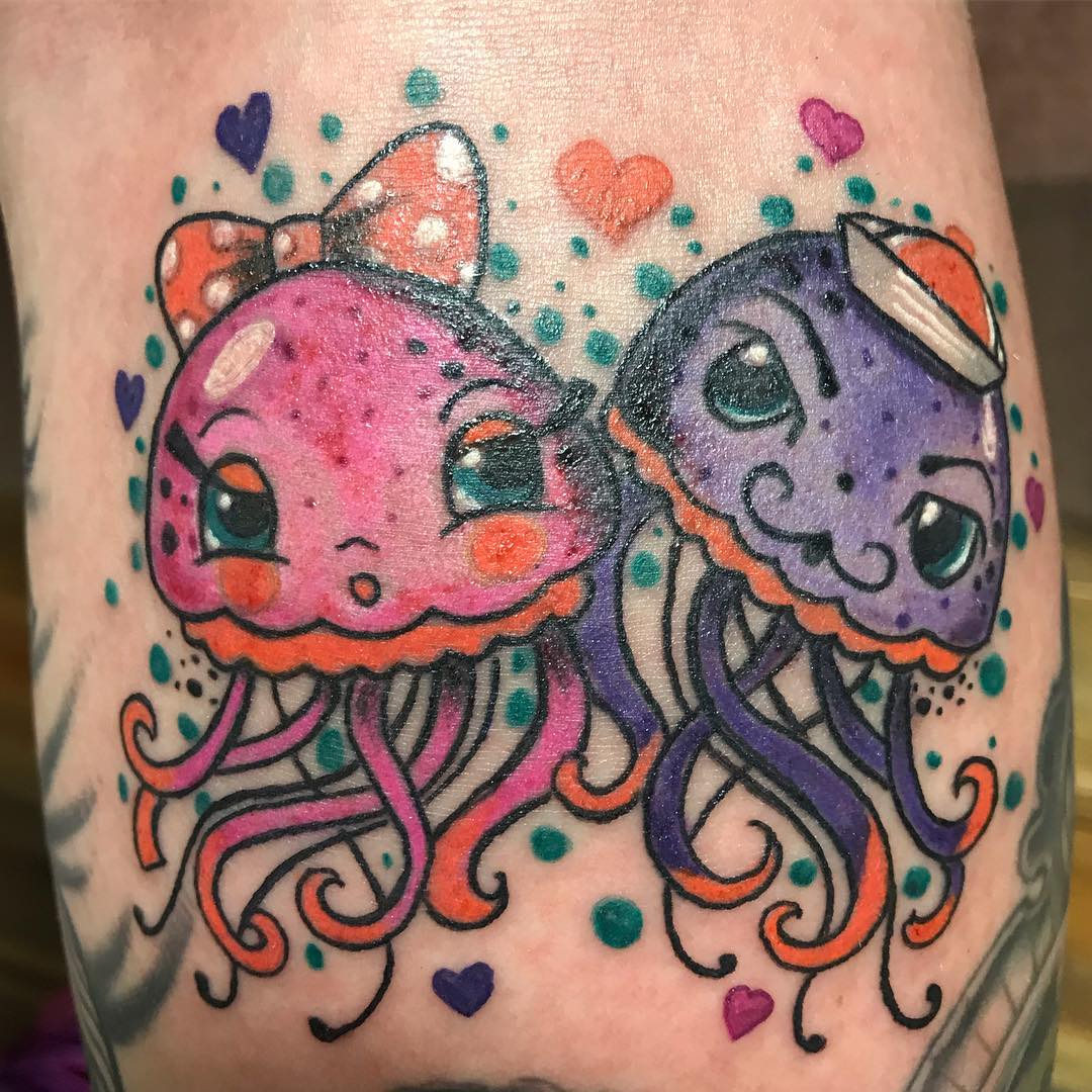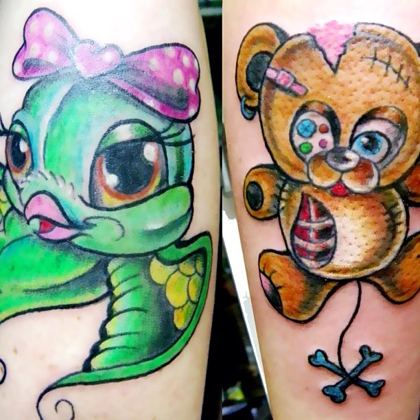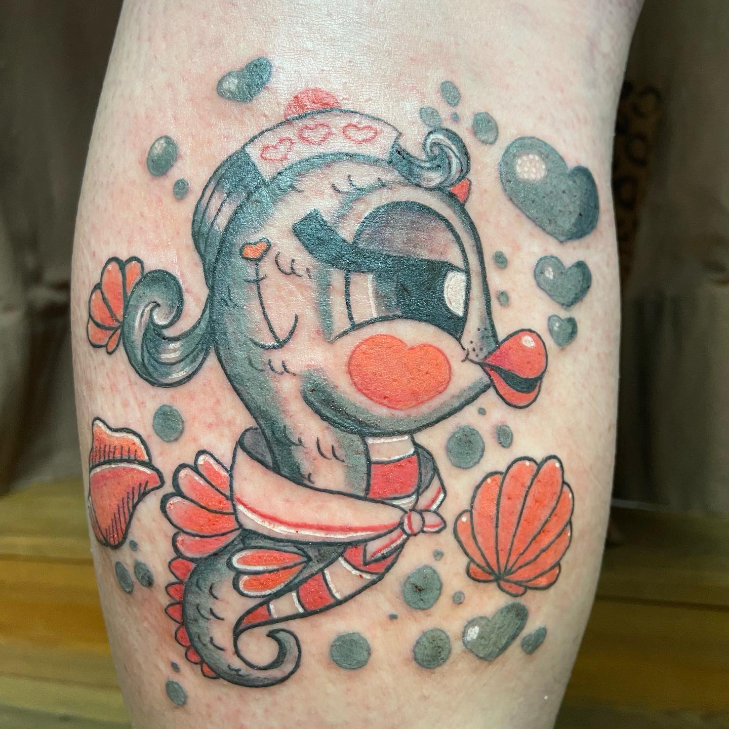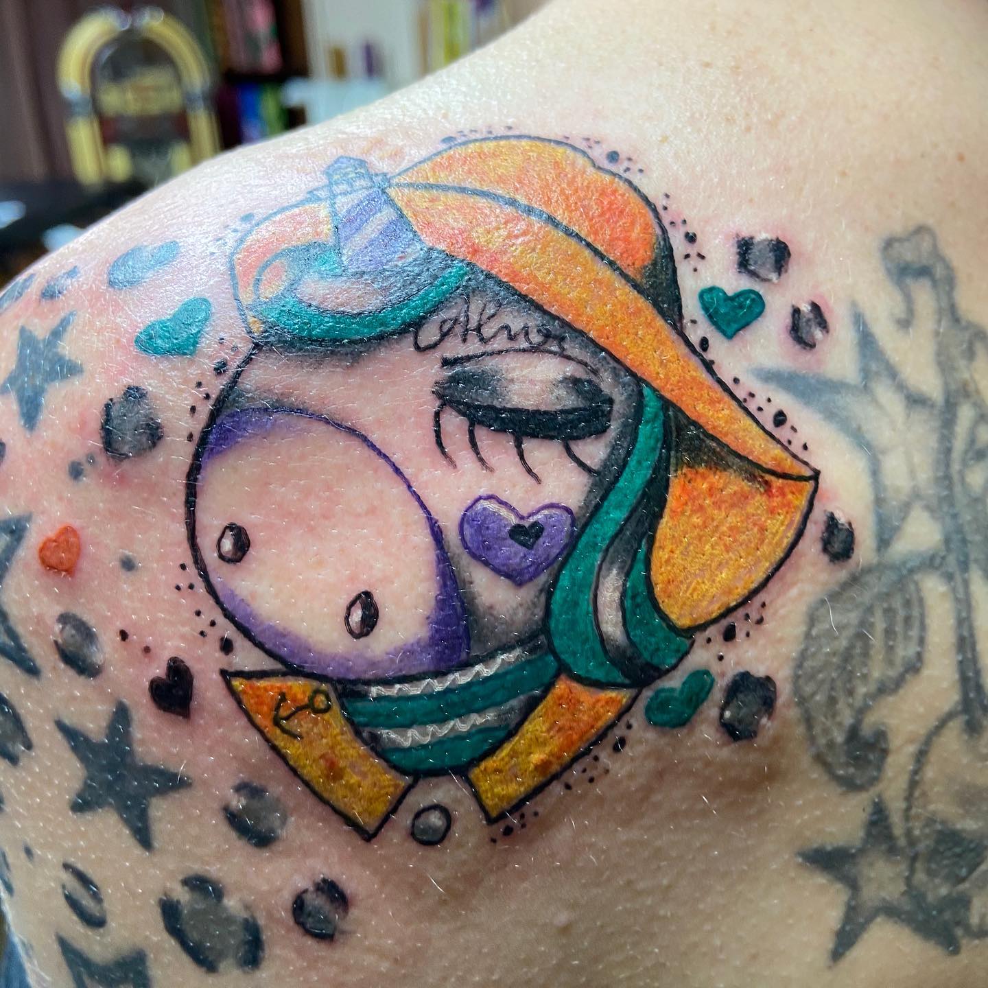 Tschiggys Steckenpferde sind Comic Tattoos und Newschool Tattoos. Ihre Arbeiten sind bunt, detailreich und extravagant, gleichzeitig aber auch zierlich und oft niedlich – der perfekte Mix für individuelles Custom Tattoo Design. Viele Kunden reisen extra für ein Tschiggy-Tattoo nach Hamburg an.