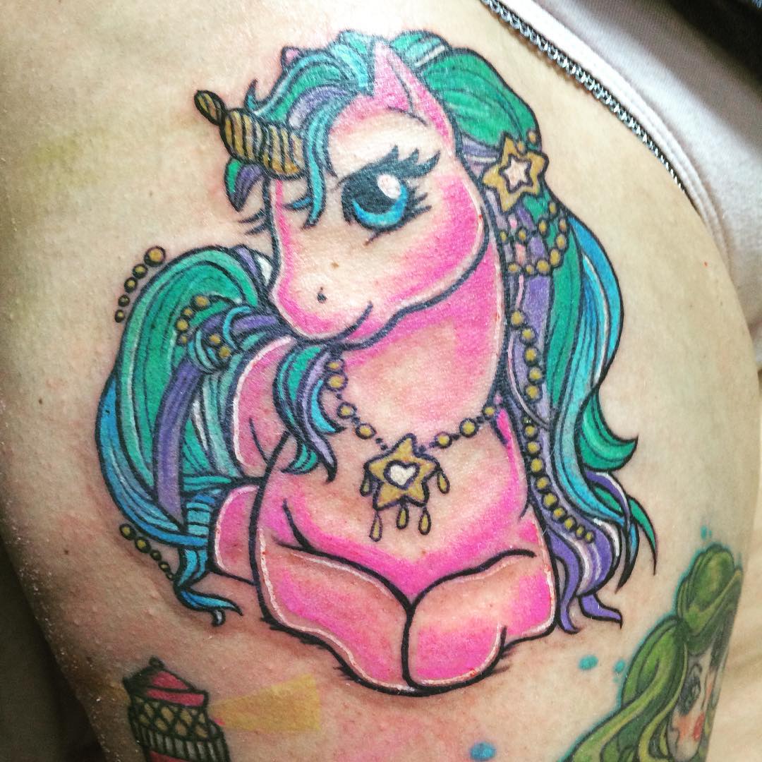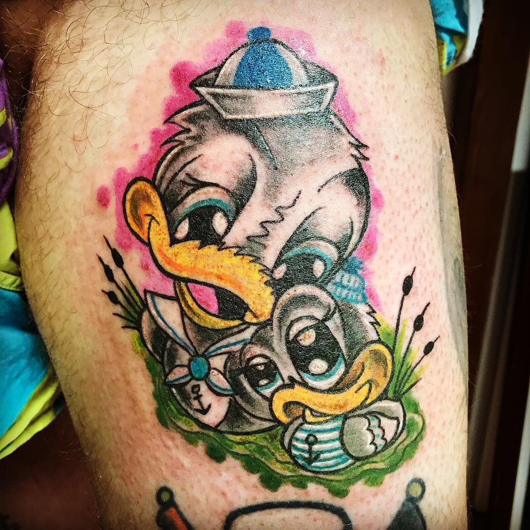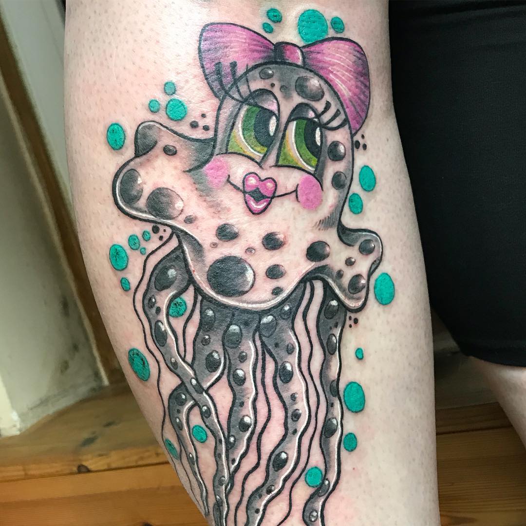 Tschiggys Steckenpferde sind Comic Tattoos und Newschool Tattoos. Ihre Arbeiten sind bunt, detailreich und extravagant, gleichzeitig aber auch zierlich und oft niedlich – der perfekte Mix für individuelles Custom Tattoo Design. Viele Kunden reisen extra für ein Tschiggy-Tattoo nach Hamburg an.